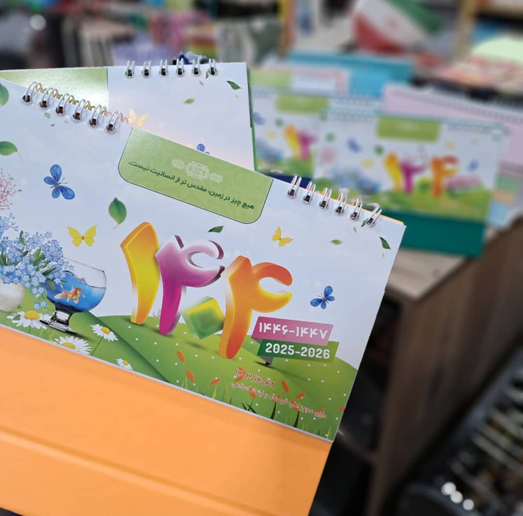 تقویم رومیزی پایدار ماهانه قابل چاپ روی پایه به صورت لیزرو طلاکوب